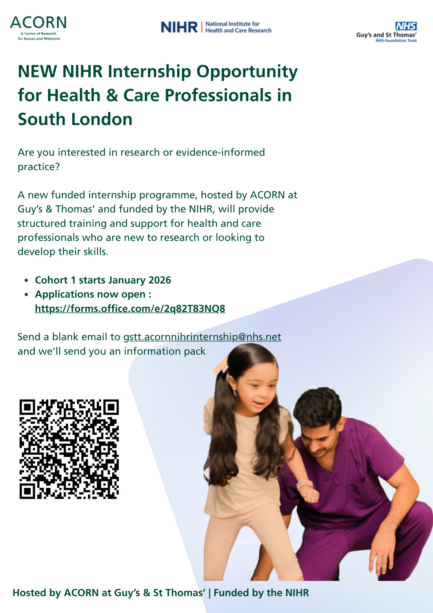 A new NIHR-funded internship programme, hosted by ACORN at Guy’s & St Thomas’, is now open for applications. This opportunity is ideal for those who are: